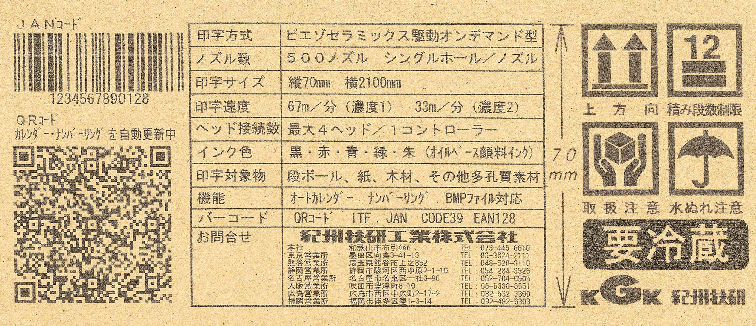 • 印字高度 70mm(180dpi)代替标签良好选择。
