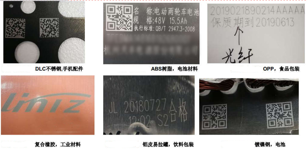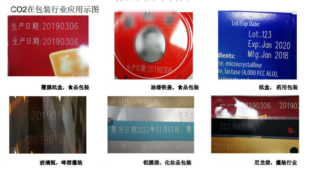 基于主流远红外波长的二氧化碳激光器研制,其输出功率大、能量转换效率高,主要是针对一些非金属材料的激光标记,广泛应用于医药包装、食品包装、饮料包装、印刷、电子元件等行业。它可以在纸箱、竹木、玻璃、薄膜、塑料容器 (PET、PO、PP) 、漆面金属件等材料上打码,响应速度快,效果优越。