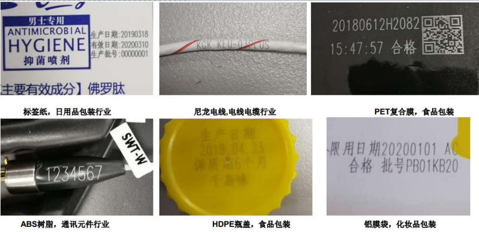紫外激光喷码机输出355nm的紫外激光,大多数包装材料对紫外激光的吸收效率较高,因此适用范围很广,特别适合食品饮料、医药包装、化妆品,数码家电等各个行业。