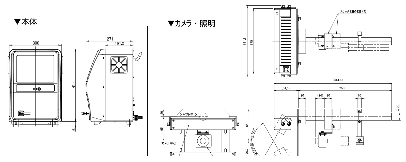 | 外形尺寸 | 300mm(W)×261.2mm(D)×435mm(H) 由于连接有相机等的线缆,因此背面需要有 100mm左右的空间。 | |||